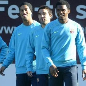 Entrenamiento_Barcelona-1 El técnico del conjunto blaugrana, Frank Rijkaard, mostró un posible once titular para el partido del próximo domingo ante el Real Madrid sin Ronaldinho ni Deco y con Giovani en lugar de Messi.
